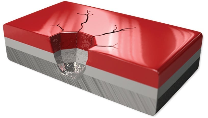 Damaged and broken paint film, varying in depth and extent depending on the cause.