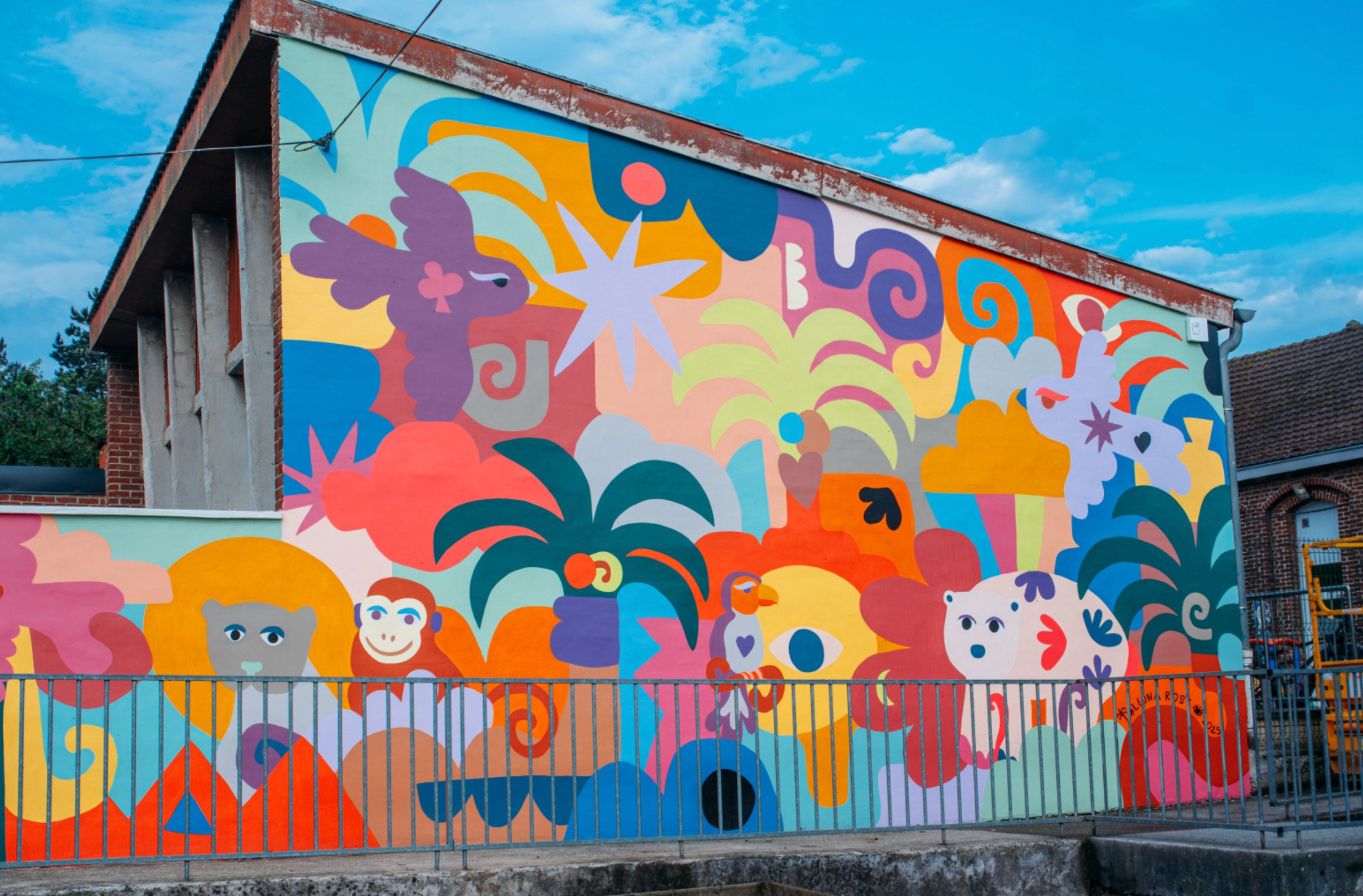 The murals feature endangered animals like the marine iguana, blue-throated macaw, chimpanzee, monarch butterfly, snow leopard and a magical polar bear blended with floral designs and gentle patterns. Each piece is meant to inspire joy, curiosity and a deeper connection to nature. One indoor mural even added a fun twist with bold, outlined shapes that spark imagination.