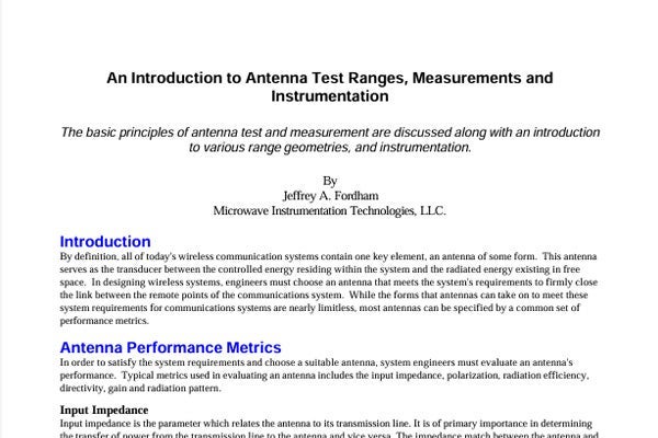 Introduction to Antenna Test Ranges Measurements and Instrumentation