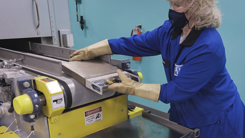 A PPG technical service representative removes an oven airflow measurement device from a high-performance curing oven