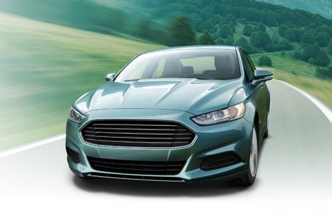 Two women shaking hands next to vehicle