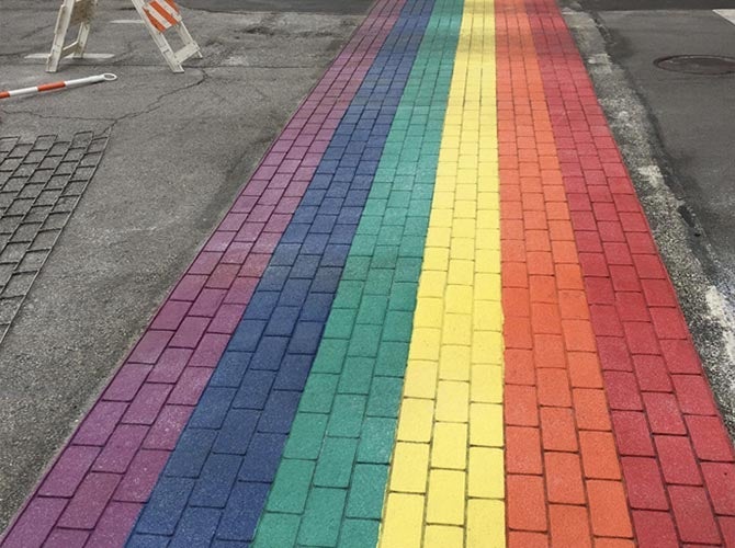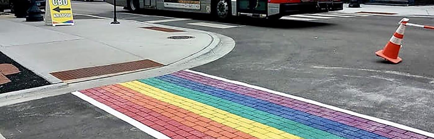 More than a dozen ENNIS-FLINT® by PPG TrafficPatternsXD® preformed thermoplastic crosswalks on North Halsted Street between Bradley Place and Melrose Avenue were repainted rainbow colors to celebrate Pride Month in June, 2019. The rainbow crosswalk was financed by the Northalsted Business Alliance, the area’s chamber of commerce.