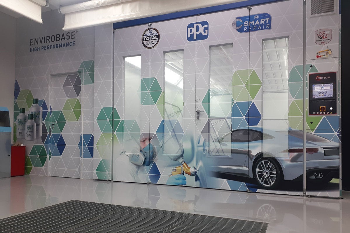 - Cabina de pintura - para llevar a cabo la práctica de la aplicación de los productos siguiendo el proceso recomendado por PPG.