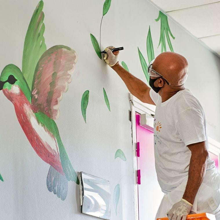 Our recent cross-country COLORFUL COMMUNITIES® project in France, in partnership with AFM-Téléthon, was special for many reasons. For the 4th consecutive year, we beautified the environments of hundreds of medical staff and caregivers, and this year we were working across six different facilities. But mainly, it was the first time our Réunion colleagues, led by Pascal Ledoux, PPG sales manager, joined in the fun!